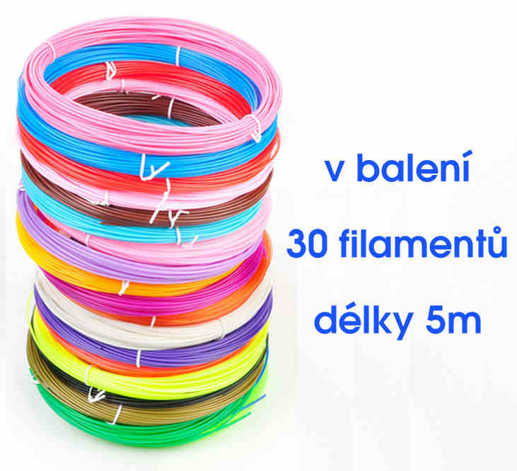 V balení navíc najdete 30ks různobarevných filamentů délky 5m