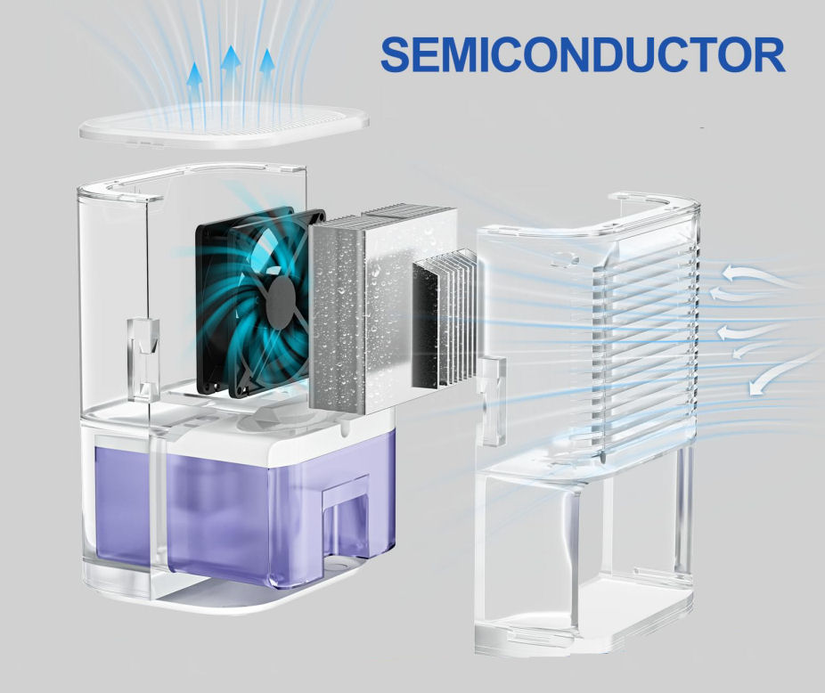 Do přístroje je nasáván vzduch, díky elektronice (Peltierův článek) se vlhkost z proudícího vzduchu v přístroji sráží-kondenzuje a zkondenzovaná voda stéká do nádobky.