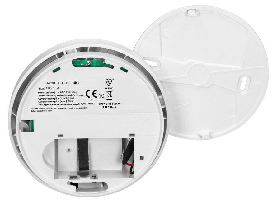 - mechanická pojistka na hlásiči zabrání nechtěnému upevnění hlásiče bez vložené baterie