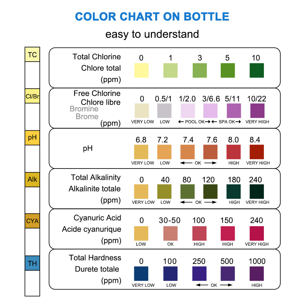 Testovací proužek vám změří:Celkový chlór (Total Chlorine, TC)