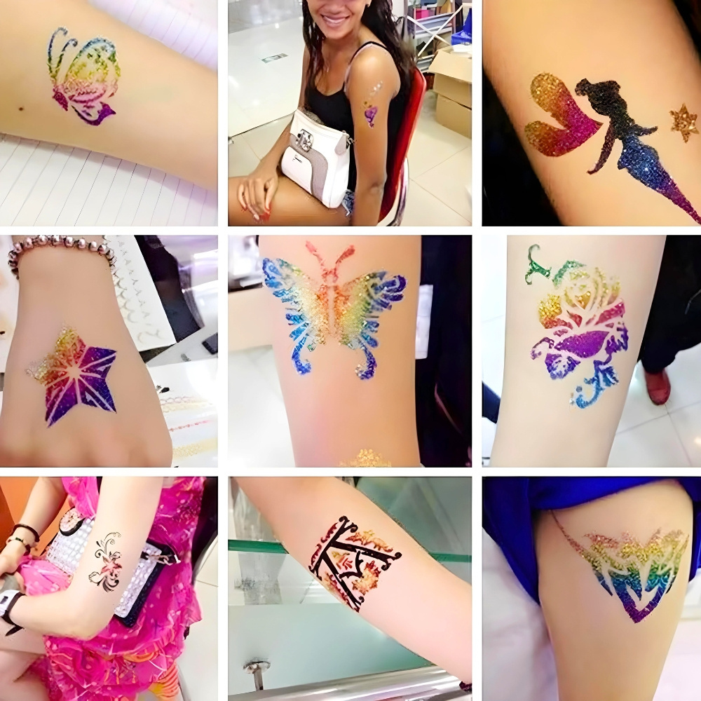 sada na tetování pro děti, třpytivá tetování, kreativní sada s třpytkami, dětská party hračka, tetování se šablonami, netoxické tetování pro děti