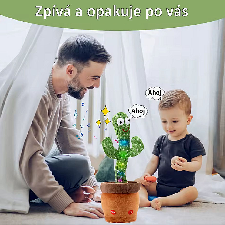 Tančící plyšový kaktus opakuje to, co na něj promluvíte.Vtipná zábava nejen pro děti, ale i na vaší párty.